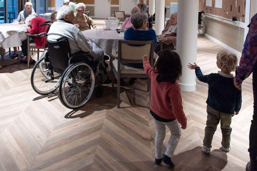 Il est 11h30 ce jeudi 5 février, lorsque l’on assiste à l’arrivée des fauteuils roulants dans la crèche parentale associative Les petits bourgeons. Située dans les locaux de l’Ehpad public Lumières d’automne, cette crèche offre un cadre parfait pour ces rencontres enrichissantes entre générations.
